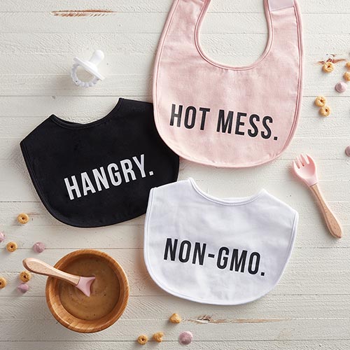 The struggle is real! This adorable bib features velcro closures on the neck for ensured comfort and features the phrase 'Hot Mess'.