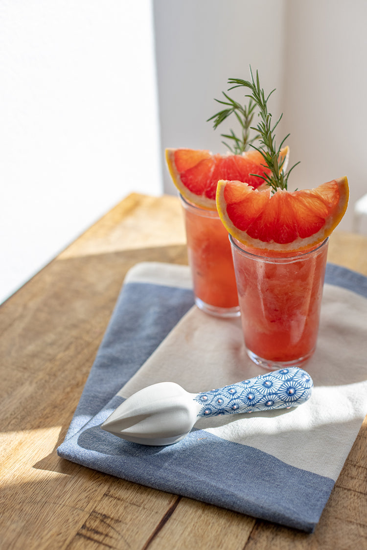 Our lemon squeezer made of hand-stamped stoneware offers fresh patterns in the kitchen. You can squeeze lemons in style and conjure up delicious lemonades in no time.