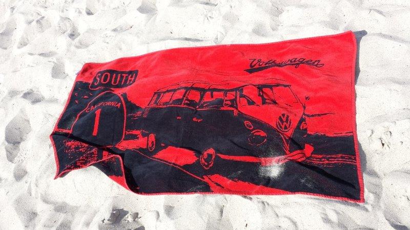 VW T1 BUS BEACH TOWEL - HIGHWAY 1/RED