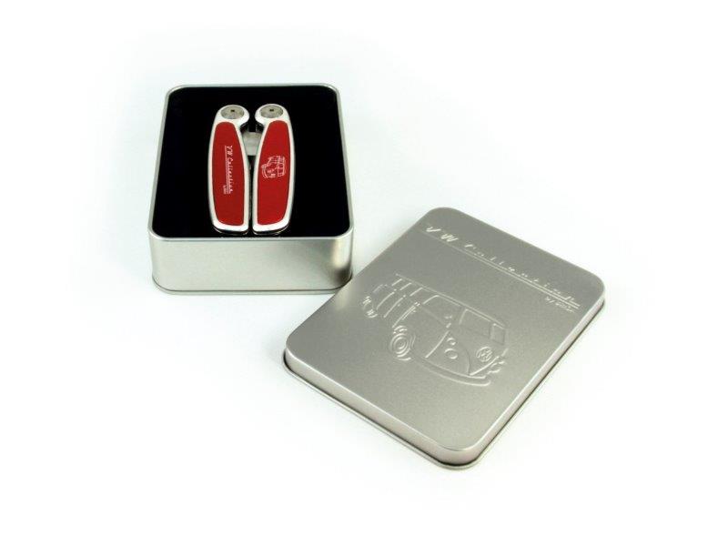 • VW logos embossed on multi tool and Includes embossed metal tin for the ultimate in gift giving.