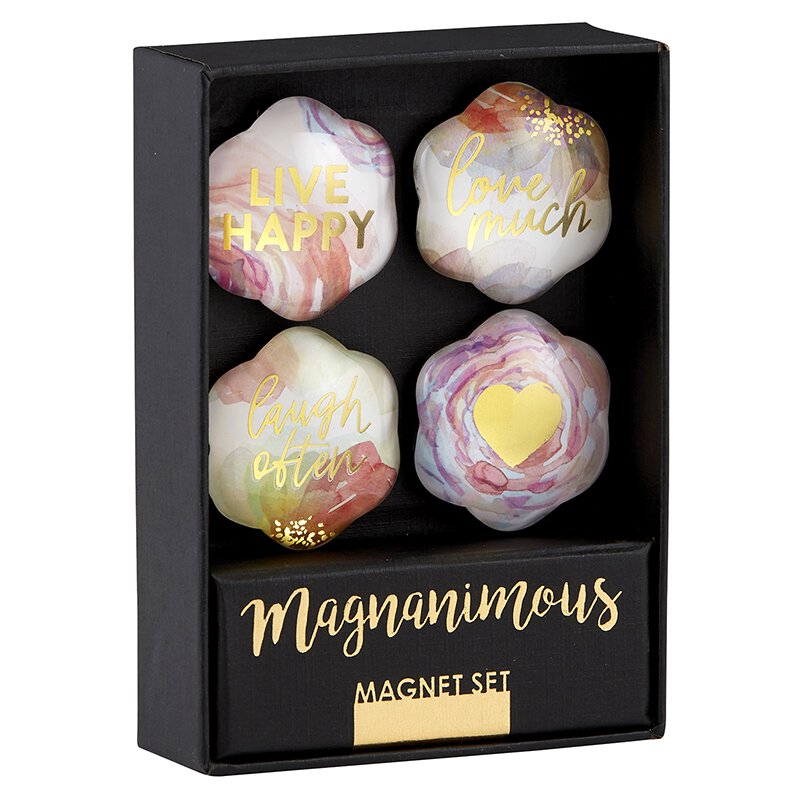 Set of 4 flower glass magnets featuring watercolor artwork from Carol Robinson.