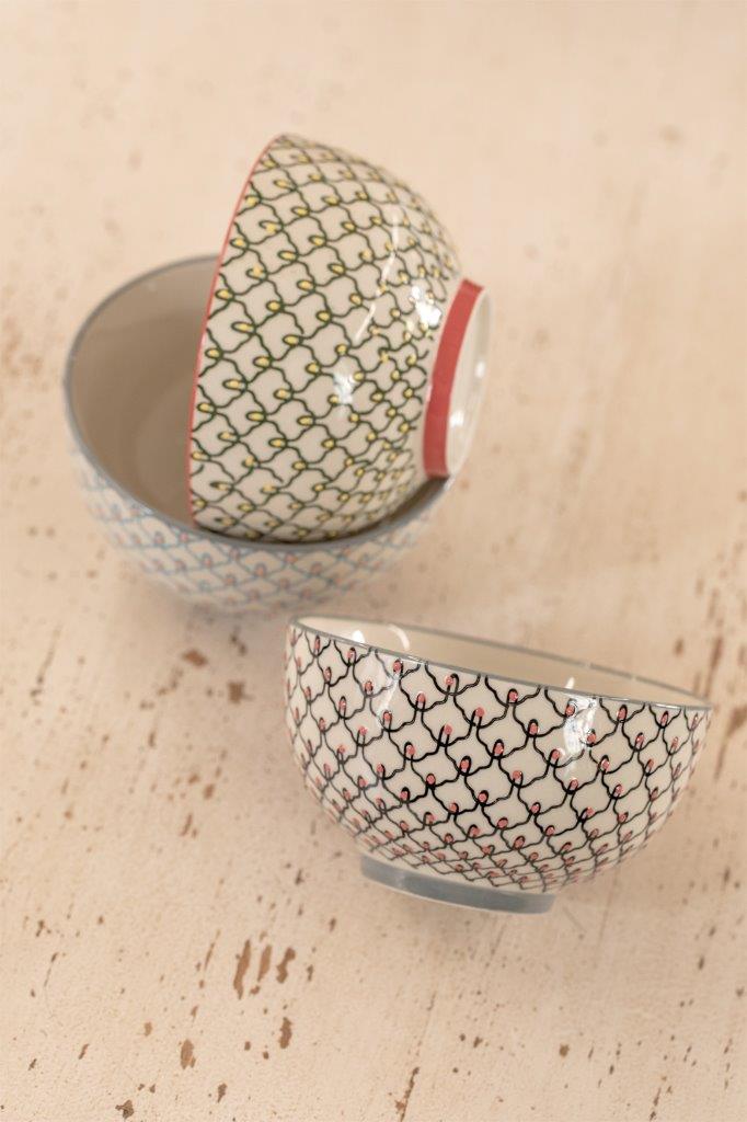 Our colourful bowls with their playful design will put you in a good mood. They score with their practical size and the filigree, hanging stamped motif. The all-rounders are made of stoneware and are suitable for a delicious lunch or dinner, as well as a fruit, snack or cereal bowl. Definitely great potential to become your new favourite bowl!