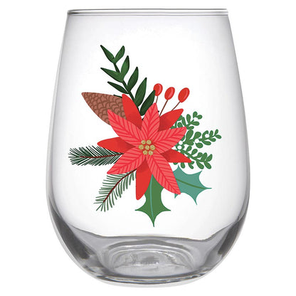 Stemless Wine Glass - Poinsettia