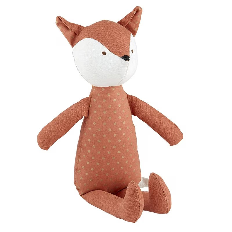 What better way to welcome baby than with such a stylish and adorable Fox toy! Fox features gold dot tummy and ears. Sweet tail too!