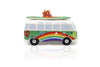 Colourful money bank in the shape of a VW T1 Bus with surfboard at 1:18 scale